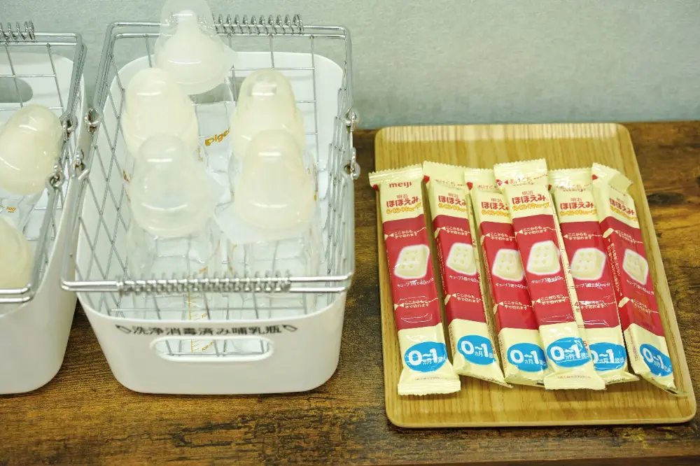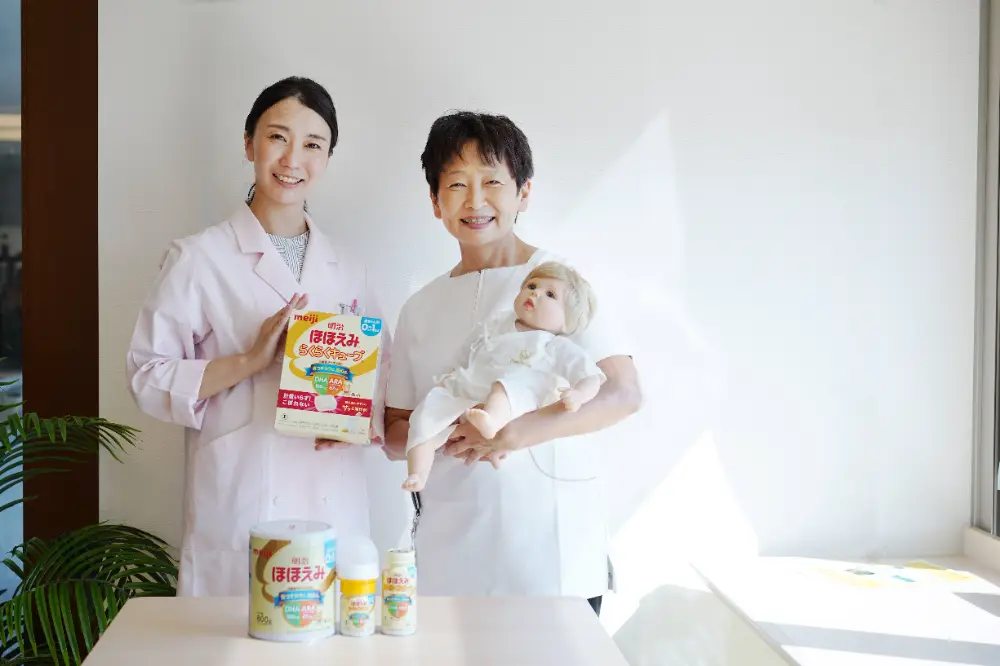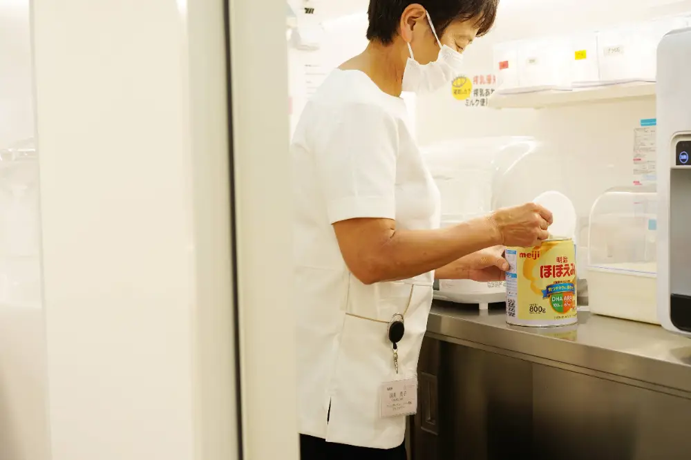 浅井さんは、「最初は別のブランドのミルクを使っていましたが、調乳を産後直後のママパパたちにもやってもらおうと考えた時に、『明治ほほえみ らくらくキューブ』がとても衛生的で扱いやすかったんです。これが採用の大きな決め手でした。」と教えてくれました。