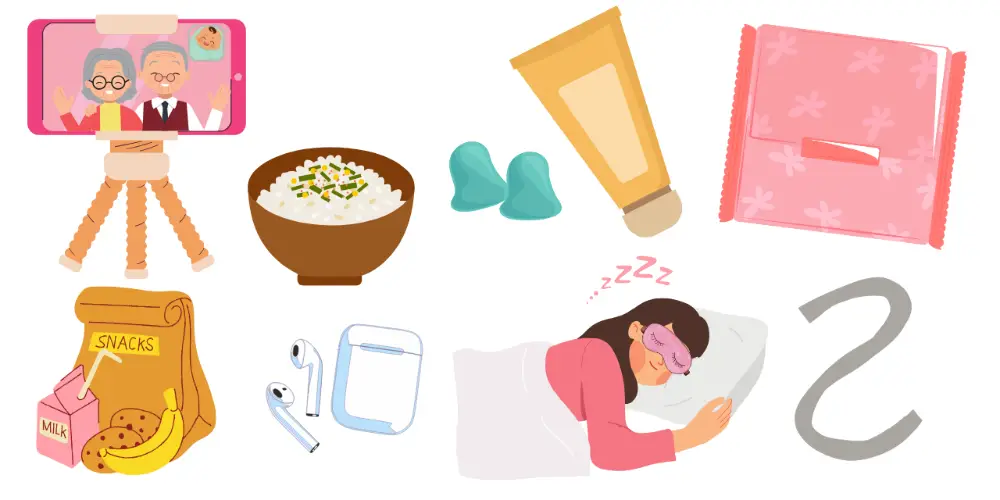 短い時間でも体を休められるように、アイマスクや耳栓などの安眠セットを用意していくのが押すすめです。