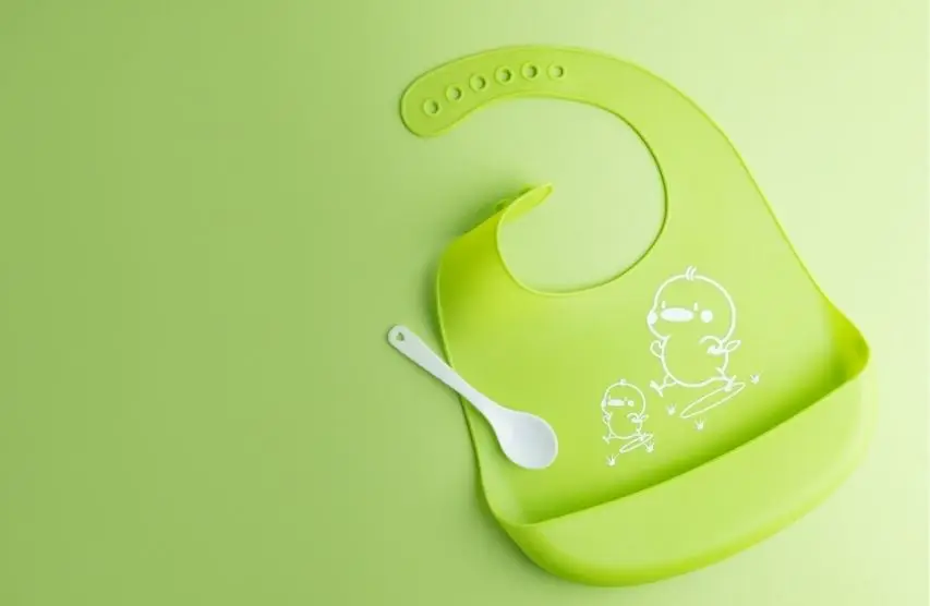 口にやさしいシリコン製スプーンや、食べこぼしをキャッチしてくれるビブが便利。食事タイムを清潔に、楽しくしてくれます。