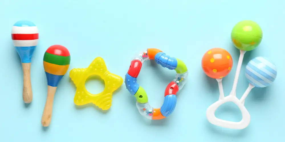 手に持ったり音を出したりと、赤ちゃんの好奇心を引き出すおもちゃ。