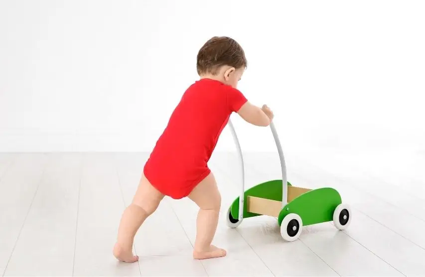 伝い歩きを経て歩き始める赤ちゃんには、手押しタイプのおもちゃが◎。