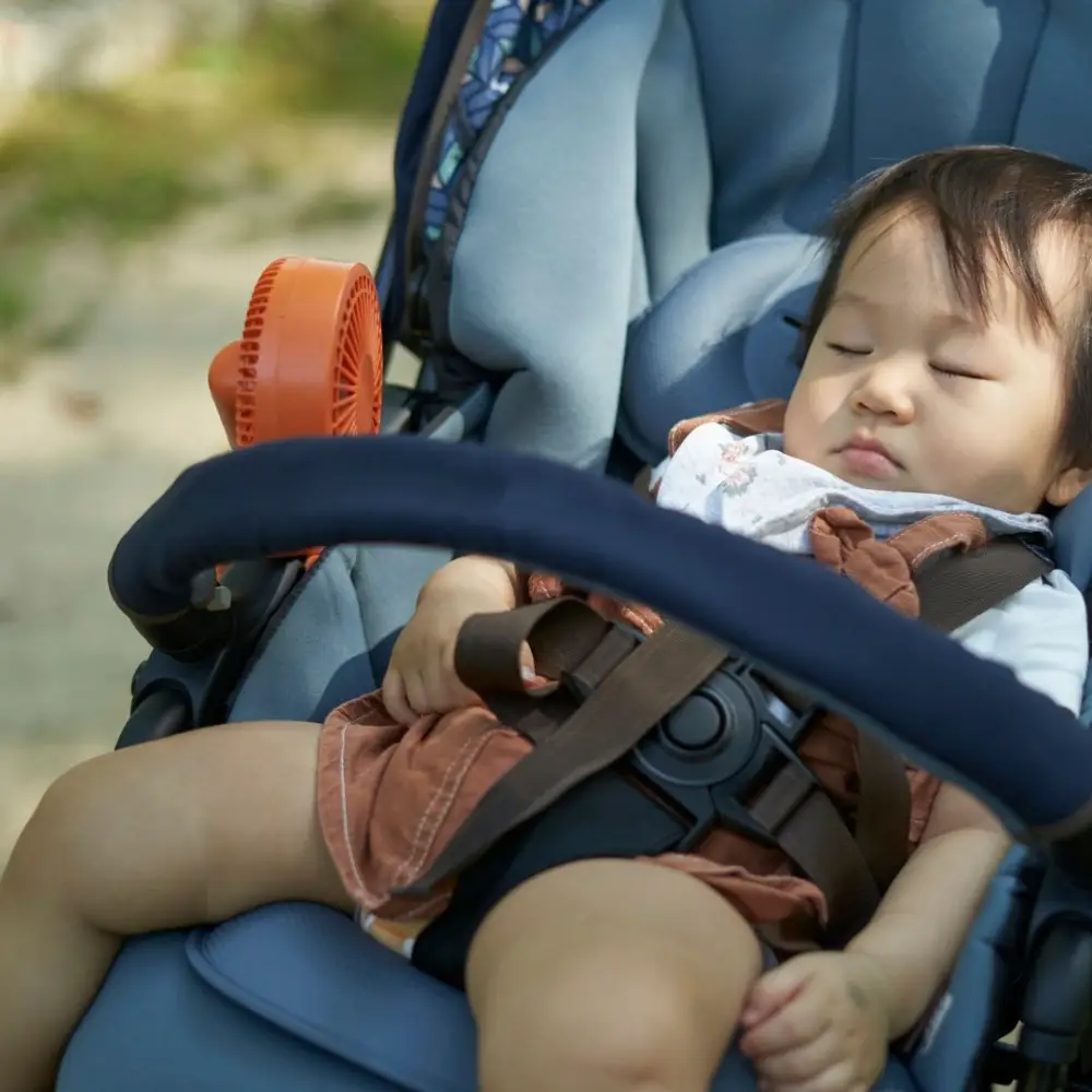 そこで役立つのが、ベビーカーに取り付けられるミニ扇風機。