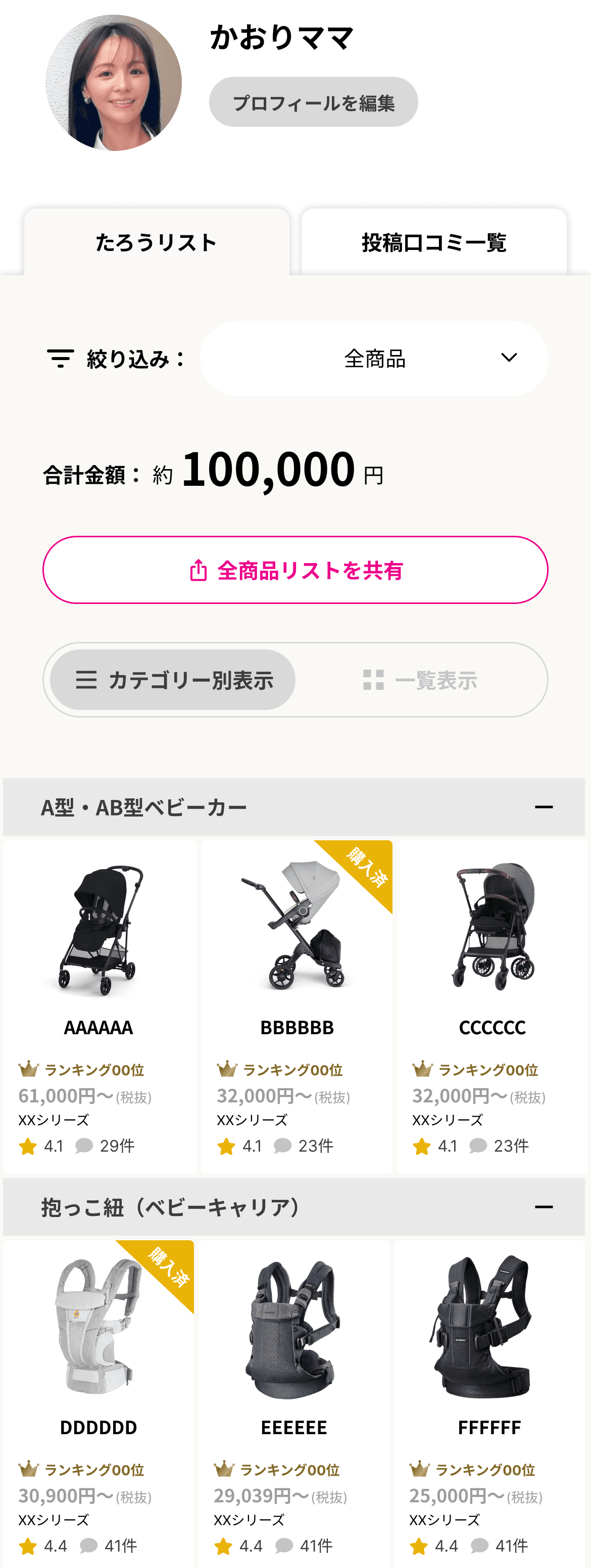 また、「未購入商品」のみのリストや「購入済み商品」のみのリストをご家族やご友人に共有することができます。出産祝いに欲しいものを聞かれた時などにもご活用ください♪