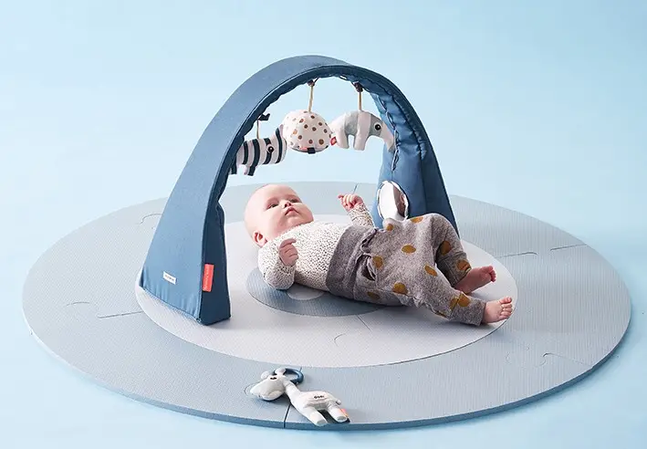 かわいらしい動物モチーフとやさしいカラーが特徴です。おもちゃ付きのアーチ型ジムは、ねんね期~おすわりができるようになってからも、成長に合わせて五感を使いながら遊べる人気アイテム♪また、幅を自由に変えられるのでベッドや子ども用お布団など、どんなところでも置いて使用することができます。インテリアになじむデザインで、おうち時間がぐっと楽しくなります。
